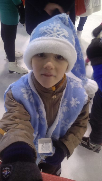 Потом была елка в спортивной школе фигурного катания. Наш папа был Дедом Морозом. Серёжа папу не узнал!!! Сказал,что Снегурочкой была тренер,а Дед Мороз настоящий.
