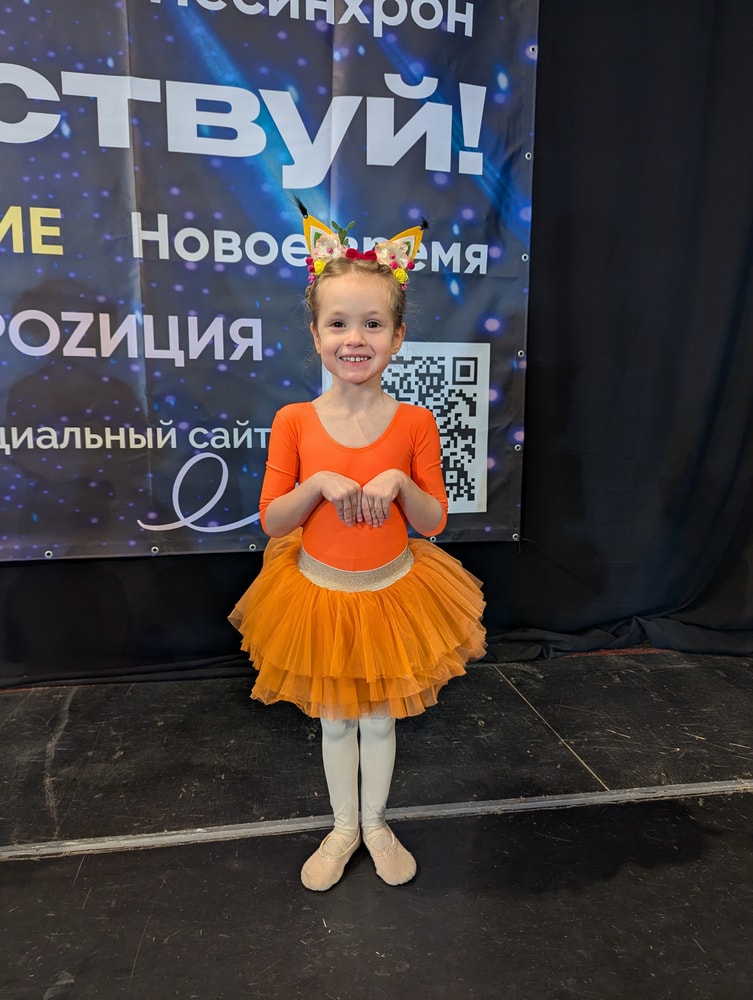 Сегодня у Дины было первое соло на большой сцене. Умничка, не испугалась, почти все вспомнила, не упала, улыбалась, носочки тянула.