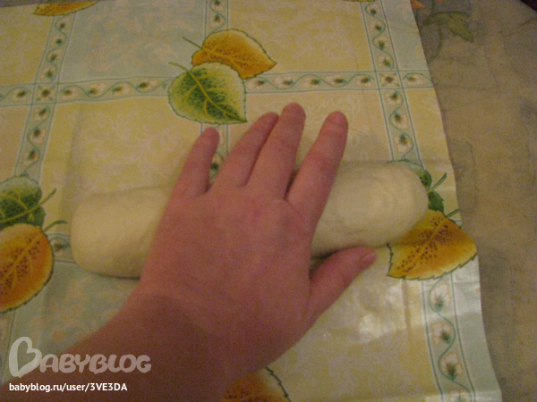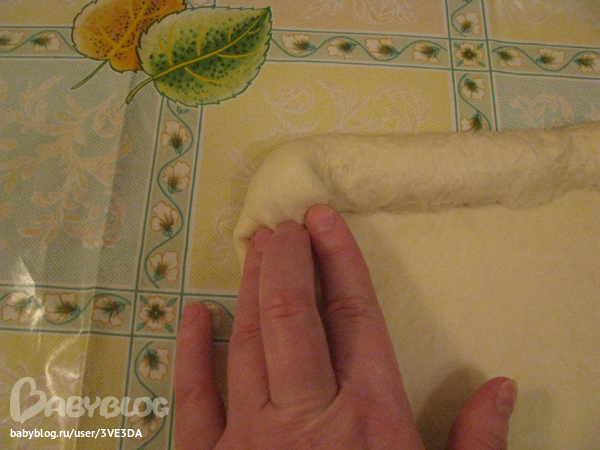 Каждые полоборота надо "придавить" рулет к тесту, чтобы плотнее был рулет