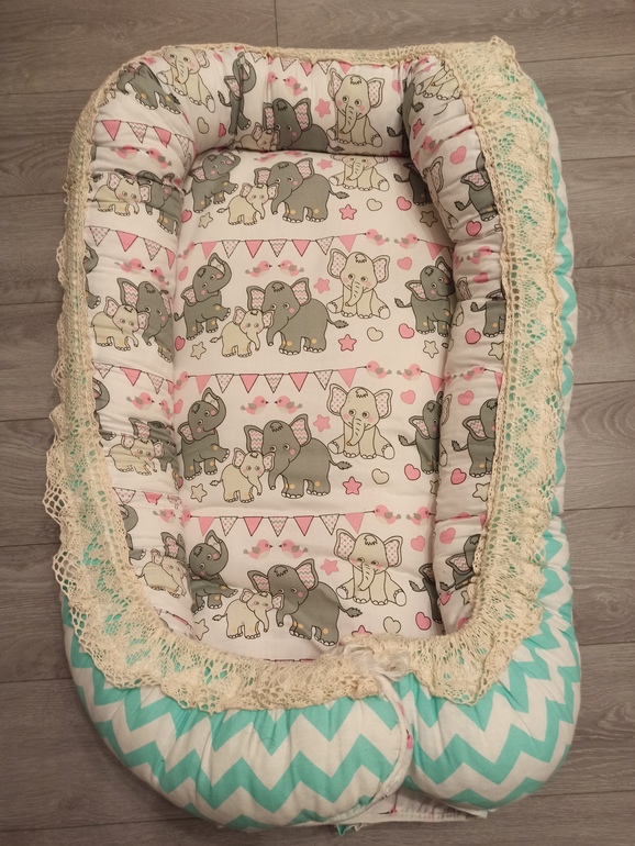 Продам гнездо для новорожденных за 2 500. Ручная работа, шила наша бабушка. Пользовались постоянно примерно до 3-х месяцев.