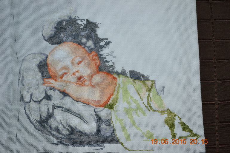 Сейчас хочу за месяц закончить ангелочка. Пришлось в отпуске переделывать часть одеяла,.тк ошибка была на пол работы((( Осталась половина работы,верхнее крыло.Фото старенькое.