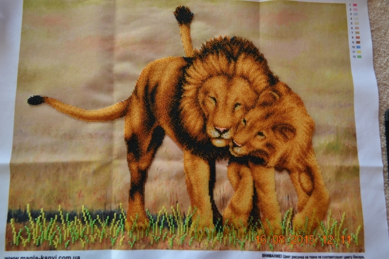 Семью львов ждала год... Дождалась и на одном дыхании закончила. Вышивала и днем и ночью. Очень понравилось вышивать бисером. Быстрее раза в два. Параллельно слушала аудиокниги и смотрела фильмы на немецком,чтобы подтянуть язык и постепенно готовлюсь к учебе.