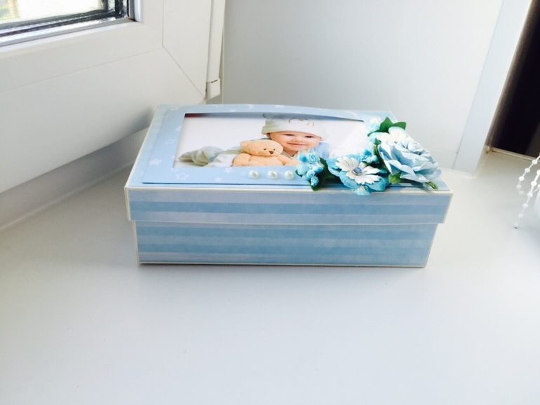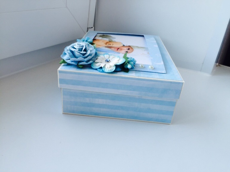 Моя работа выполнена на заказ для славного мальчика Ванечки. Коробочка получилась очень нежная и милая, как и сам малыш. Я очень надеюсь, что заказчица будет довольна.