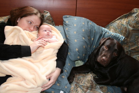 "Прихожу, крик стоит на всю хату. Ты на кровати с Егором, уткнулась ему в темечко, он орет, соска за метр валяется, а ты с блаженным лицом, собаками обложилась, 10ый сон видишь. Я соску дал, он успокоился и дальше спать")))))