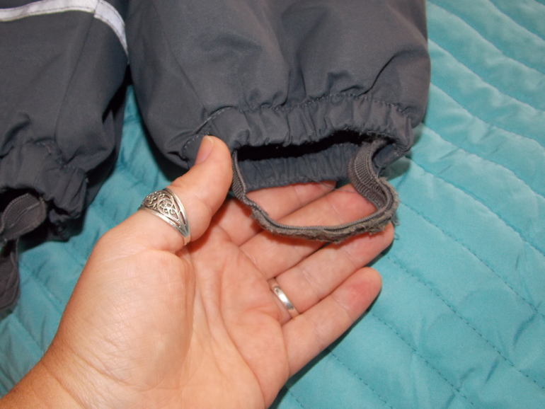Ткань в идеальном состоянии, потрепались резинки на штанишках и штучки отражающие свет, ну и липучки. Постаралась чтоб все было видно на фото.