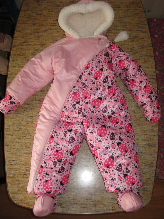 -очень теплый комбинезон за счет овечьей шерсти по всему комбинезону + капюшон;