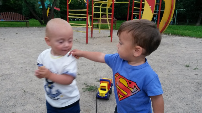 А еще Дима оочень ревнует меня и мужа к Ксюше. Щипает ее, кусает, стучит лопатками/игрушками. Но не только ее. Мы с мужем тоже не обделены такой "любовью"!! Кто знает, как с этим бороться? Я серьезно! Уже все перепробовали....