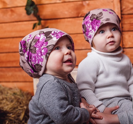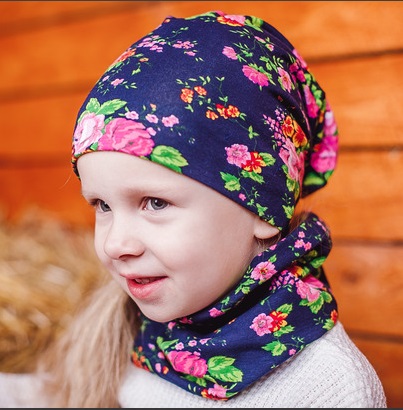 Трикотажные шапки-чулки с красивым цветочным принтом. 100% хлопок без лайкры, не тянутся