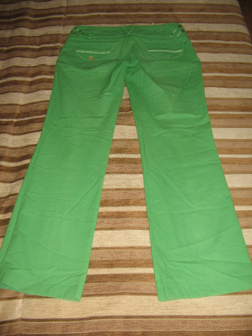 8. Брюки салатового цвета, размер 34 указан на них, думаю наш-42, на рост до 158