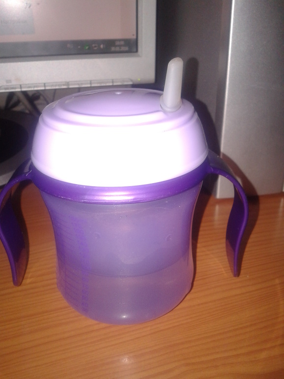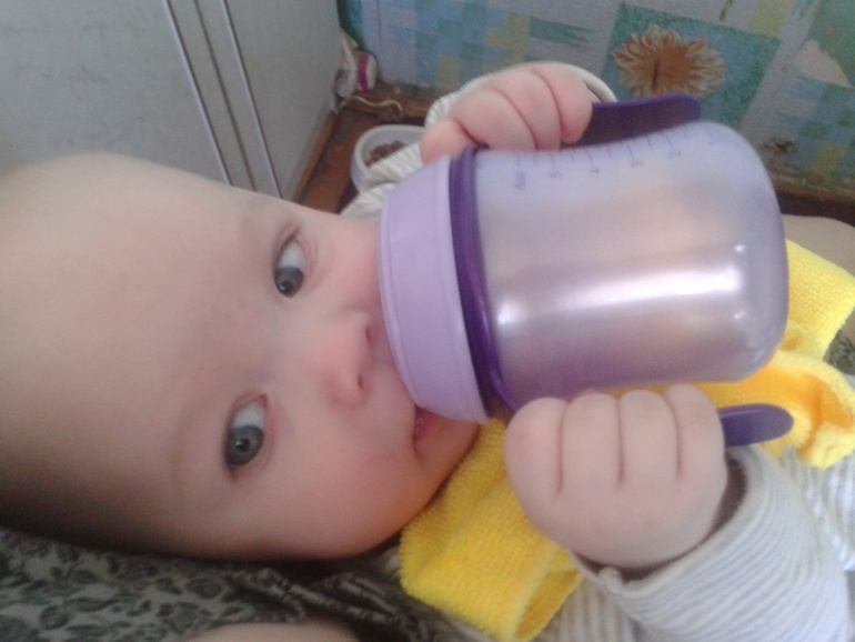 Но и для первого поильника я нашла применение, он для меня сейчас просто не заменим в кормлении дочи,... за счёт фиксированных ручек его очень удобно держать в руках и одновременно кормить ребёнка, но не в качестве поильника, а в качестве посудки для пюре или каши!!! ![]()