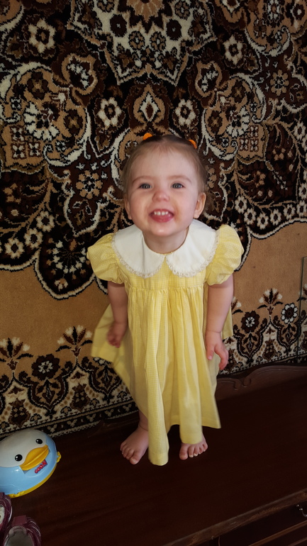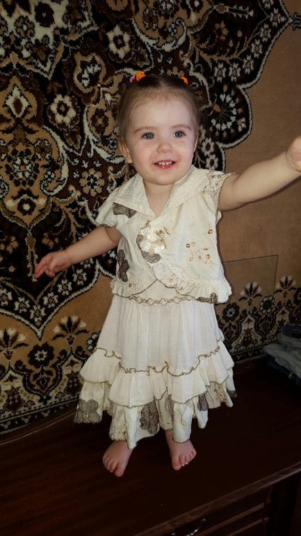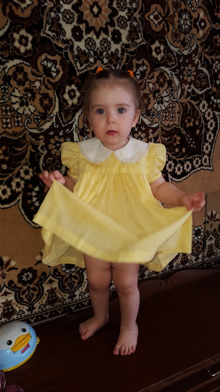 Красотка))) А моя вообще не любит переодеваться(( даже на улицу нормально не одевается, не дает с себя снять домашнюю одежду. По этому я не уверенна на счет нашего летного гардероба, а вдруг все маленькое)
