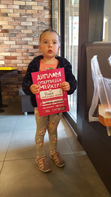 Есть у нас около дома чУдная пиццерия. Без алкоголя, и со своим нельзя, с большой игровой комнатой, всякими развлечениями для детей по выходным. Наткнулась вк на запись на мастер-класс по приготовлению пиццы и записала Варюху, вот сегодня с утра сходили.