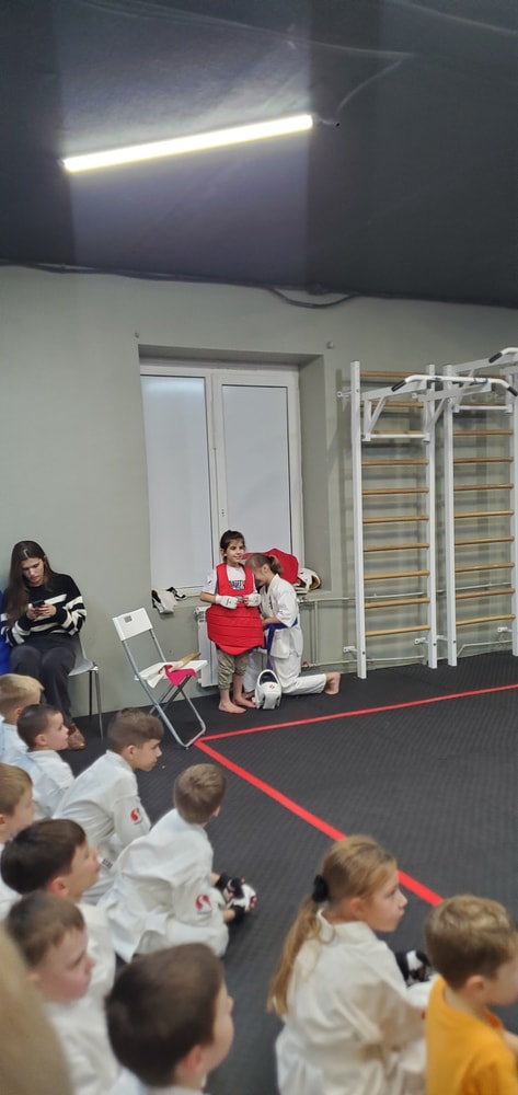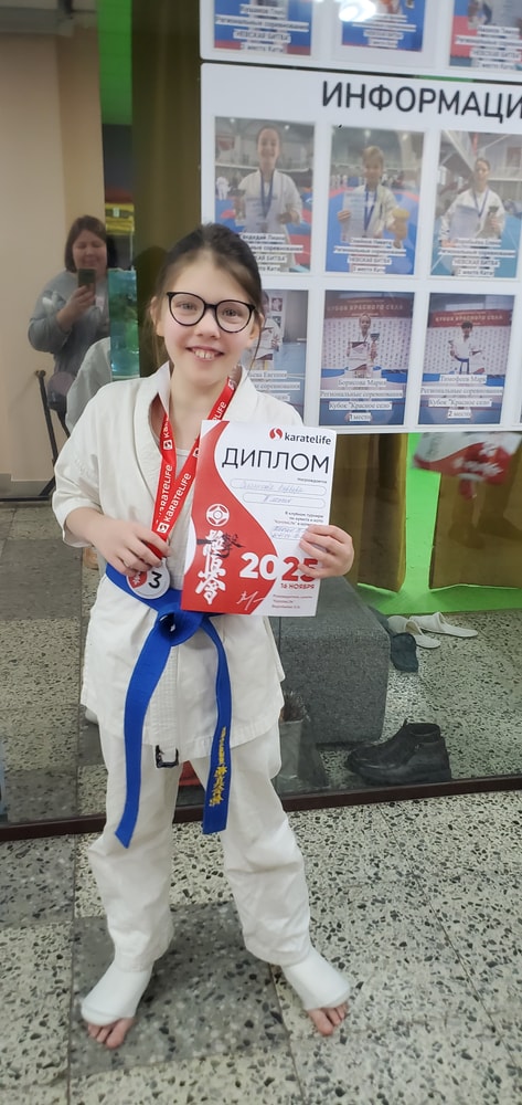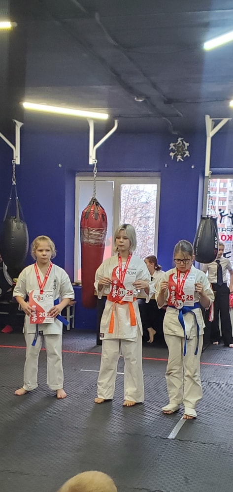Варя ката провалила, четвертое место, но тренер сказал, что это лучшее ката, которое он у нее видел, соперницы были очень сильные! Кумите(бои) третье место, но там девочка у нее в паре просто зверюга)), и бедная Варя просто шугается и уходит в глубокую защиту, не пытаясь атаковать. Ну, третье тоже хорошо!
