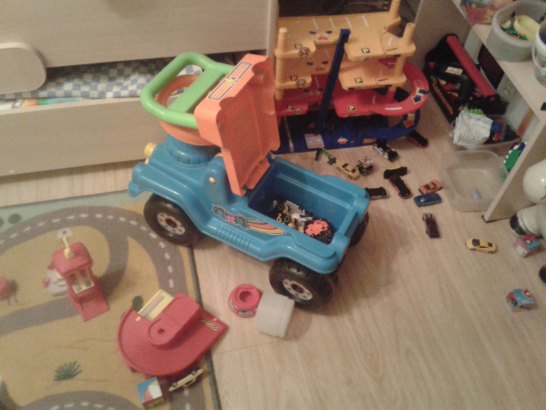 У нас дома просто свалка пакетов с игрушками в дальнем угла шкафа, по полу машинки, в машинках машинки. 2 большие корзинки уже трещат. Завтра попробую перебрать все. Все не по возрасту в пакет и куда-нибудь.