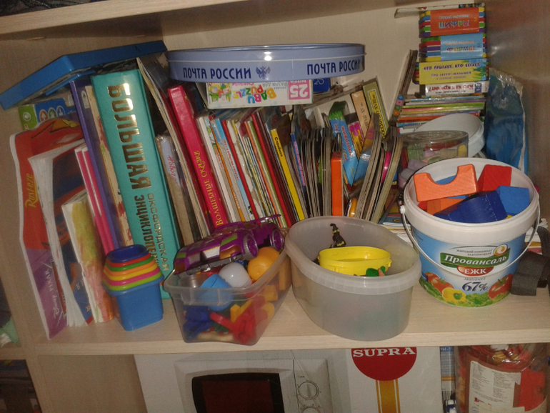 Вот когда был только Ваня, то игрушек было просто много. Появился Дима и их стало огромное кол-во! Прям уже не знаю куда девать их. И родителям распихала по шкафам и у нас их неприлично много. Им же надо новые, да еще и по 2 штуки покупаем, чтобы не дрались! Отдавать их некому, выбрасывать жалко. В этом году попрошу все подарки в деньгах делать, книг тоже куча, у Вани еще аллергия на книжную пыль :(