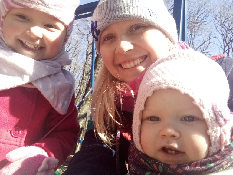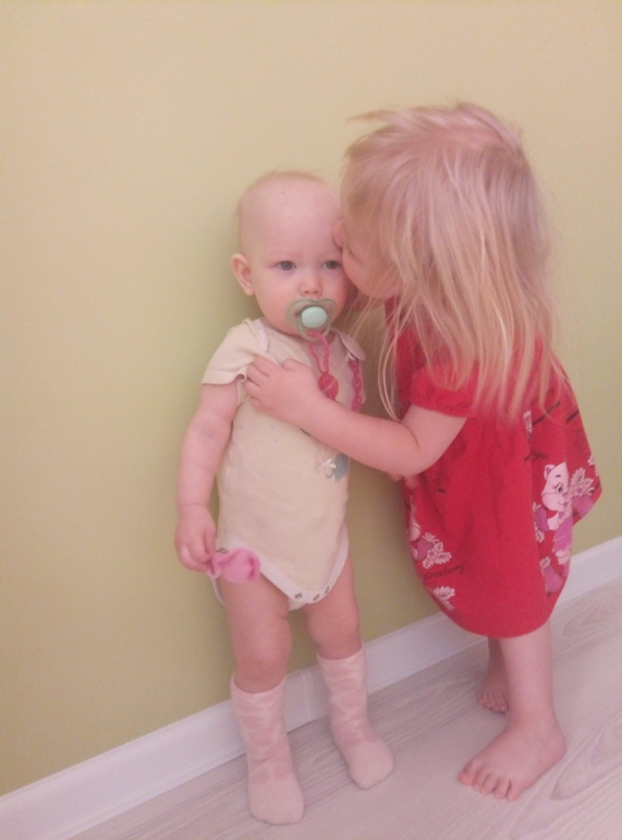 Все повторяет за сестрой! Везде лазит, такая деловая стала))) Ходит на площадку пешком, в коляску не заставишь сесть. Поля за пластилин, и она просит посадить, Поля танцует и этой надо. Вообще, она очень музыкальная, танцует подо всё))))