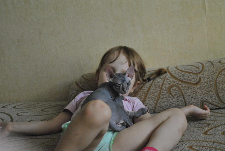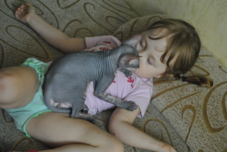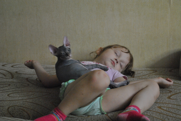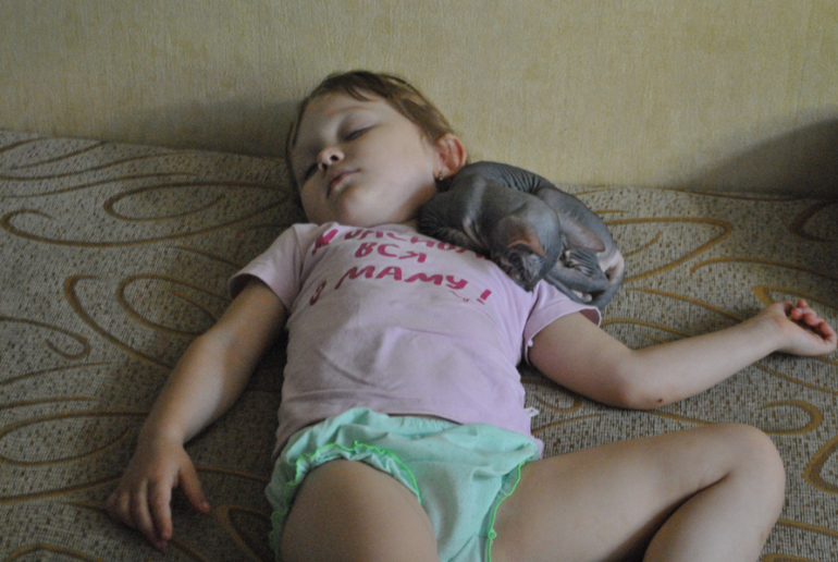Я только соберусь пост создать,они положение меняли:-) она его и бьет,таскает,тискает,а он ее больше всех любит:-) твоя Ева не тискает кота?)