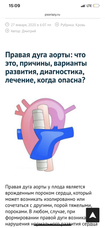 Врожденный порок сердце, дуга аорты в право развёрнута 18,4 недель