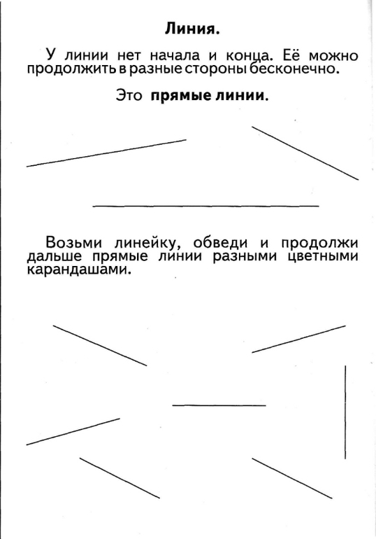 - Что узнали о прямой линии? (Она не имеет ни начала, ни конца. Она бесконечная.)