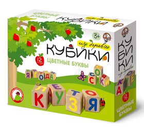 Набор кубиков из дерева «Цветные буквы» , 12 штук