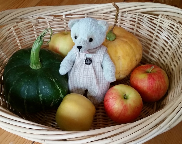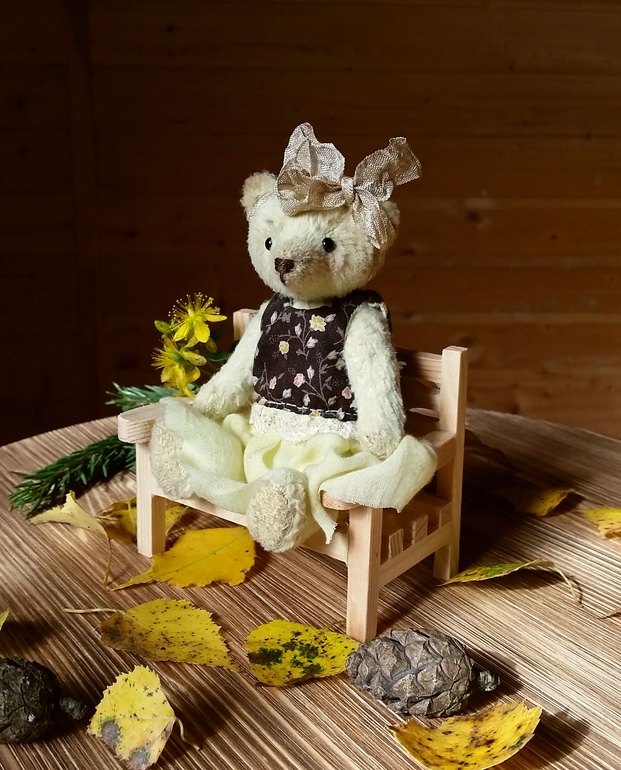 Матвейка сшит из вискозы, набит липовыми опилочками, утяжелен металическим гранулятом, штанишки из японского хлопка. Рост 17 см.