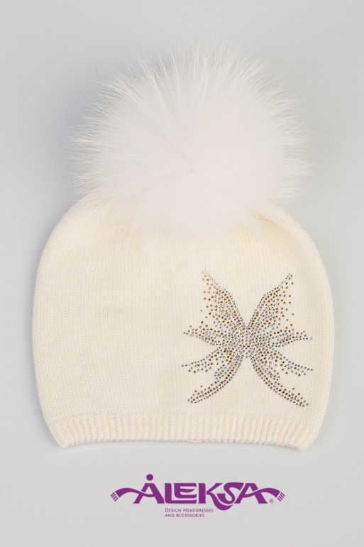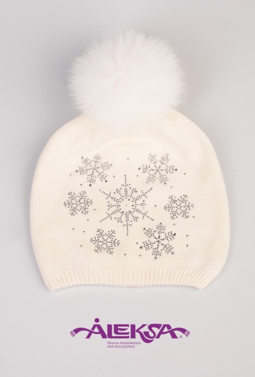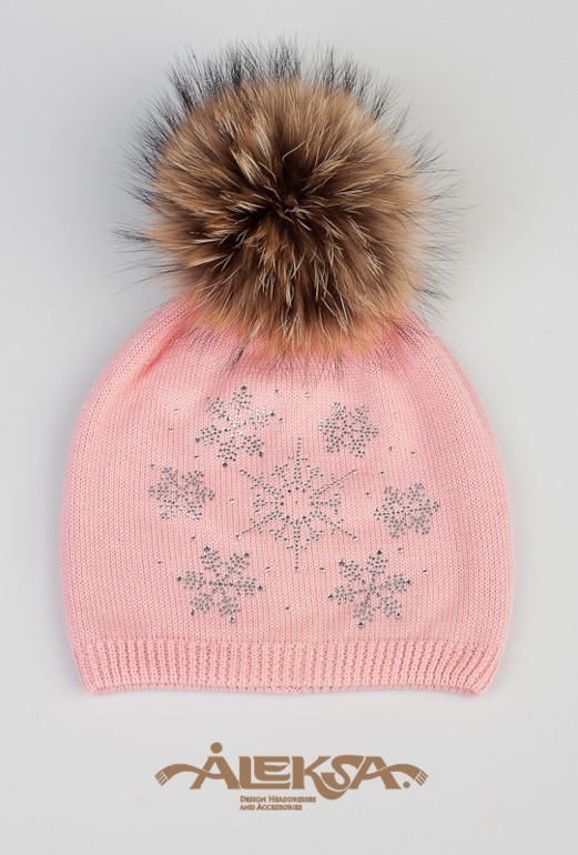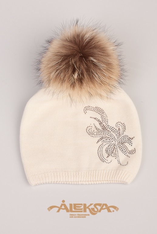 - шапочка взрослая ажурной вязки без страз, с меховым помпоном. Идеально подходит клиентам, которые устали от страз – по достоинству оценят и полюбят эту модель. По цветам: молочный, бежевый, стальной, графитовый и какао. Цена 2450р