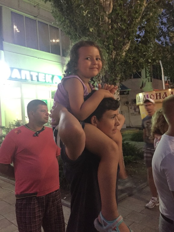 В этом году я решила отправилась в Анапу.Решение далось очень тяжело,т.к. ну не люблю я ее,хоть была там 10 лет назад, без ребенка, гостила у друзей.Воспоминания свежи и не лучшие, все таки это не Европа.НО так как у меня есть отличные друзья с которыми мы совершаем совместные поездки,они меня подбили на машине посетить сей край)))Это мы в пути.