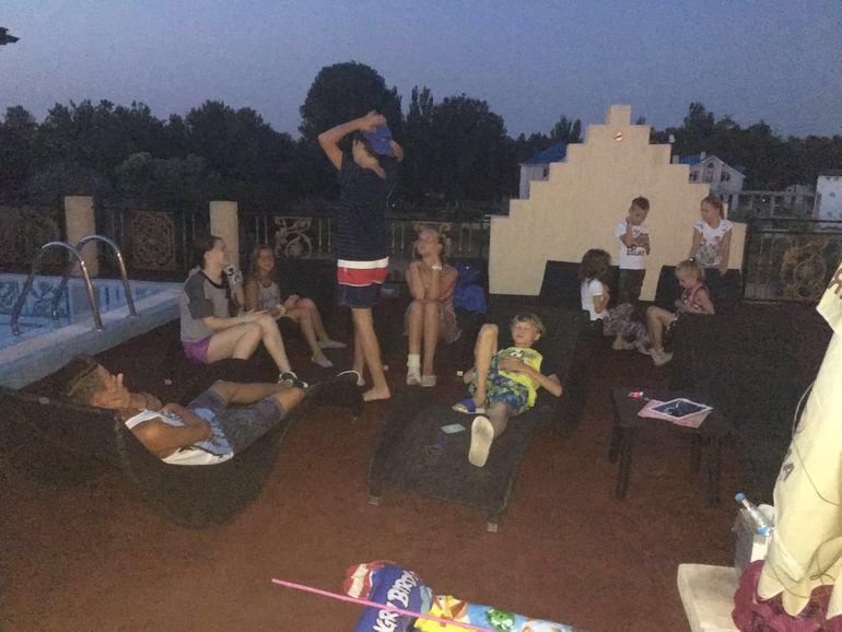 Итак по порядку. Нас 23 человека,шесть машин из которых 12 детей. Боже на что я подписалась думала я, когда еще зимой бронировала отель вместе со всеми. Меня только радовало ,что едем моя любимая компания и дети наши все дружат и им будет весело. Отель я не выбирала, за неделю до выезда поинтресовалась куда хоть едем, кстати мы очень довольны. Отель "Белый песок" в Джемете.Отель именно для нашей компании, на крыше два бассейна, шезлонги, стоянка, очень уютный и на первой линии. Номера правда не очень, не очень ремонт, простенький, но самое главное есть: душ, телевизор, кондей и холодильник.