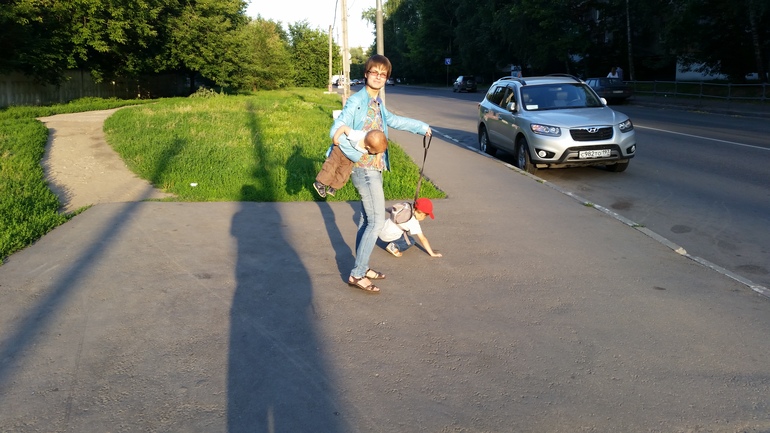 Что я могу сказать? Качественная позитивная вещь, легкая в уходе. После дождя акулу вытерли тряпочкой и повесили сушиться. Я обязательно докуплю Леше побольше, а этот останется Мите на те времена, когда важно будет не только как у папы, но и как у брата. А теперь пара фото о том, как мы дурачились на прогулке: