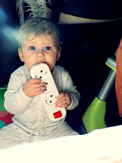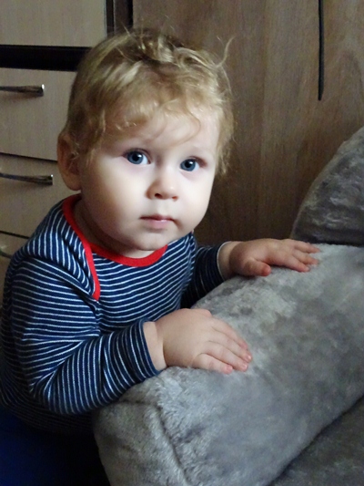 10500 кг., 8 зубов. 74 см. Болтает много, кушает хорошо, но только в пюре. Фрукты только в кашах и полизать. Встаёт сам, любит стоять, стоит уверенно долго, но не ходит. Большая эмоциональная привязанность к родителям) это таак мило- жмётся щёчкой, головушкой) Очень многое понимает. Особенно нельзя- сразу прячет руки, но через секунду пытается сделать это снова. Прячется за штору. Любимая игрушка- пылесос поэтому папа всегда пылесосит вместе с ним)