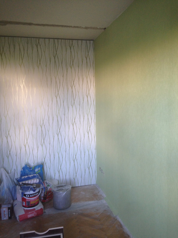 тут опять пришлось нанимать людей, штукатурь точно не умеем, да и тонкое это дело выравнивание стен... но обои , то сами можем поклеить...
