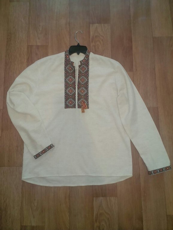 и в завершении года вышила мужу к 30-летию на домотканом полотне вышиванку: