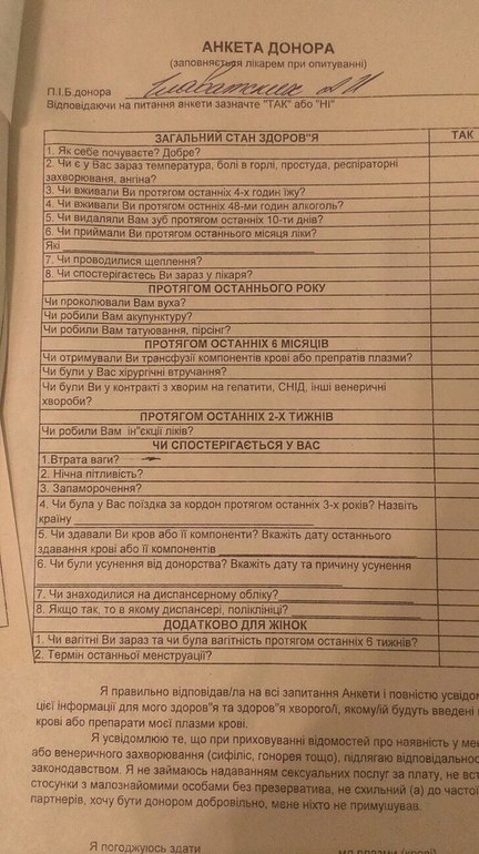 Накануне позвонив в регистратуру, я узнала, что нужно с собой взять паспорт с пропиской Славянска или района и перед посещением поесть. Значит так, требования к здоровью жесткие, но не сверхъестественные. Спрашивают о заболеваниях, о приемах препаратов, об учете. Смотрят кожные покровы, измеряют давление, слушают.. Нужно осознавать ответственность за дачу ложной информации. Диагностический бланк (один из) я сфотографировала для тех, кому интересно.