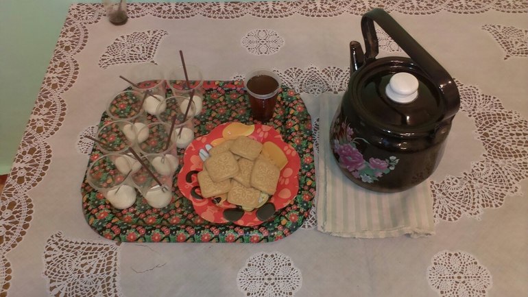 После посещения врачей и экспресс-теста на группу, на столе поставили нехитрое угощение (фото) - невероятно сладкий чай…