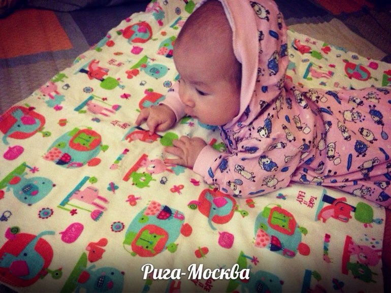 Нам так нравится переворачиваться на животик, что как только я кладу Викулю на пеленку, она сразу переворачивается и разглядывает, изучает картинки на пеленке)) Так забавно)))
