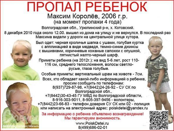 8 декабря в Волгограде пройдет акция "Сотня шариков для Максимки" два года со дня пропажи Максимки.