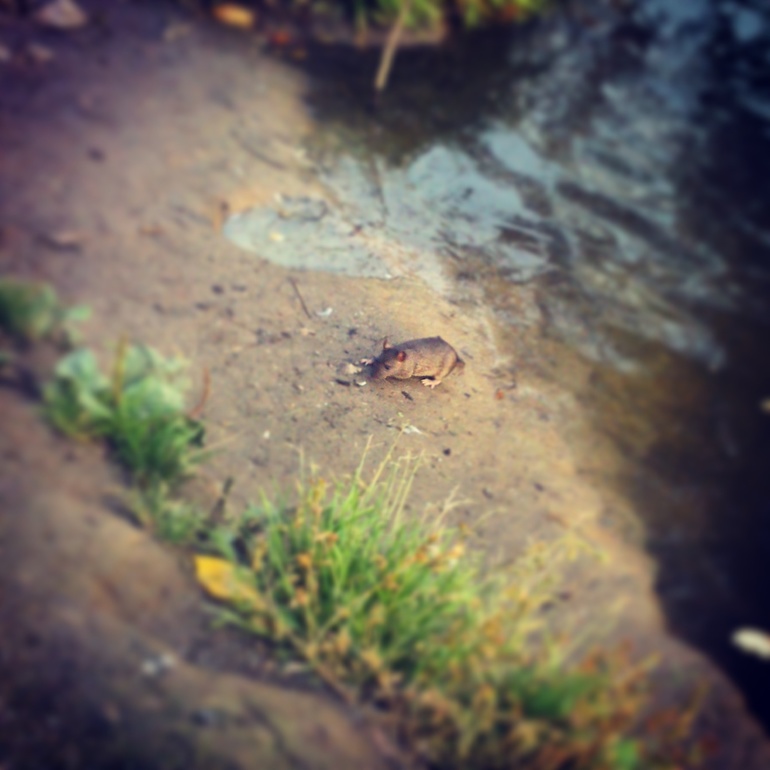 Зима близко, все отьедаются, кормили уток,налетели голуби,но к ним привыкли,и выскочила крыса,борзая, близко подходит, но не противня