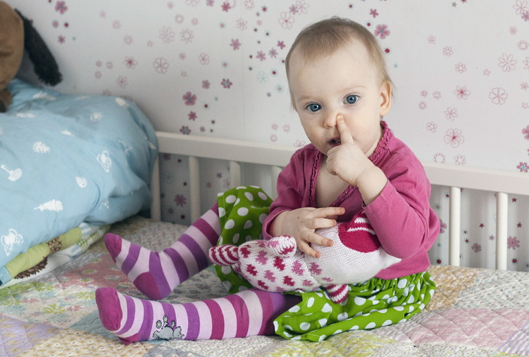 Но самое для меня удивительное - её любовь к нарядам. Только найдет какую-нибудь тряпочку - раз, и на голову! И сидит...наряжается в кухонное полотенчико бесконечное число раз - наденет, выглянет хитренько, захохочет и снимет, а потом снова и снова. Мальчишки так ну никогда не делали.