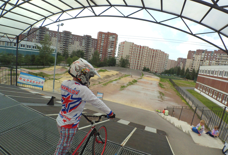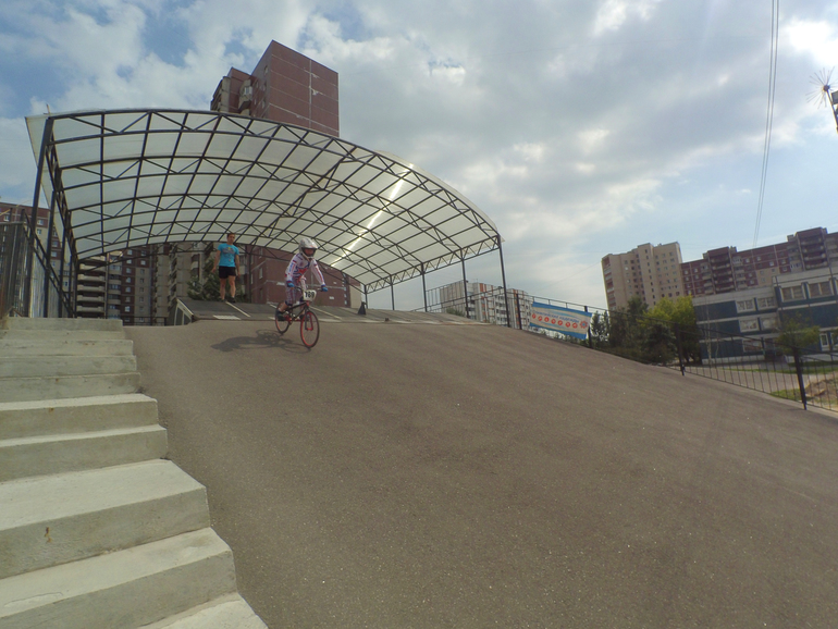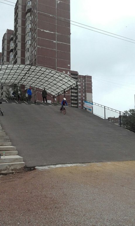 А высота примерно с третий этаж. Я боюсь еще больше, чем он, в прошлом году уже были падения на горках, что внизу, там тоже довольно лихо. Зато как там прыгают и летят с разгона через горки старшие ребята! Дух захватывает!