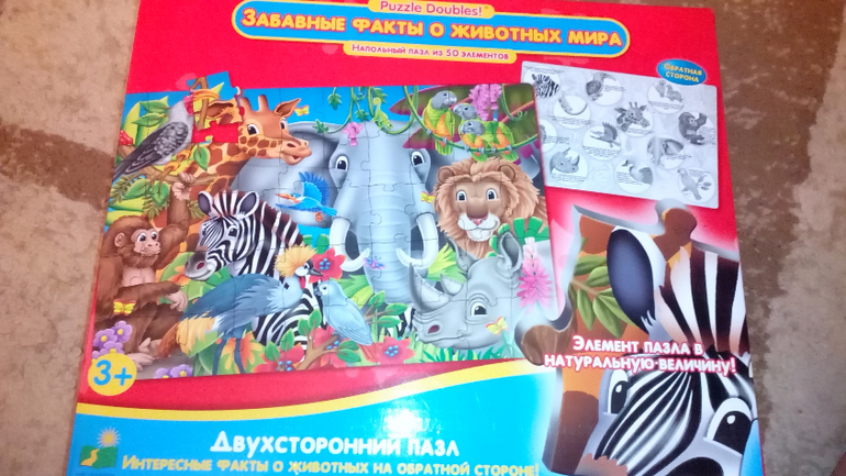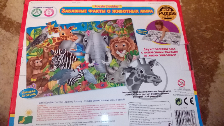 Пазл Забавные факты о животных мира 50 эл The Learning Journey будет интересен ребятам от 3 лет и старше. Пазл двухсторонний, на лицевой стороне изображена яркая картинка с животными, а на оборотной - интересные факты про них
