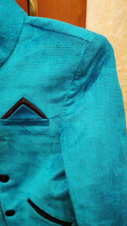 Пиджак теплый. ткань типа бархат. с блестками. На елке красиво смотрелся.