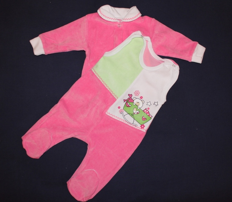 11. Велюровый комплект 2 в 1., Кофточка на кнопках + длинные ползунки.