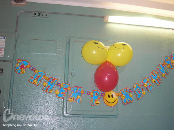 Пока Вика в школе,мы готовим ей сюрприз)))Нарядили комнату шариками,упаковали подарки.Даже на лестничной клетке у нас праздник!А начинается он от самого подъезда!