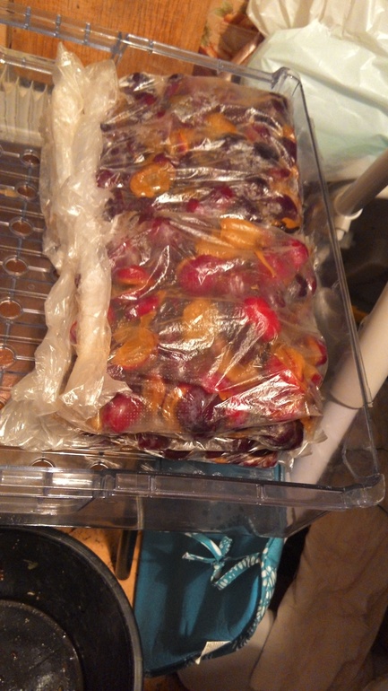 А мне муж привез с дачи ведро слив))))И вот я мыла,резала пополам,выковыривала косточки и складывала пакетики для заморозки.9 пакетиков получилось))Ну про три мешка яблок я молчу,даже представить страшно,сколько с ними работы.Думаю сделать пюрешки для Жорика и заморозить тоже...Что-то еще насушу.Кушать надо помаксимуму...