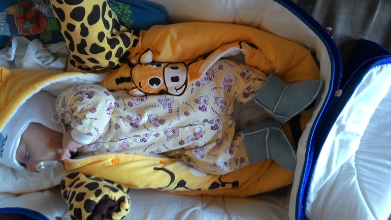 А, это под осенний, с жирафиком, я-то представила такой теплый на овчине конверт! :))
