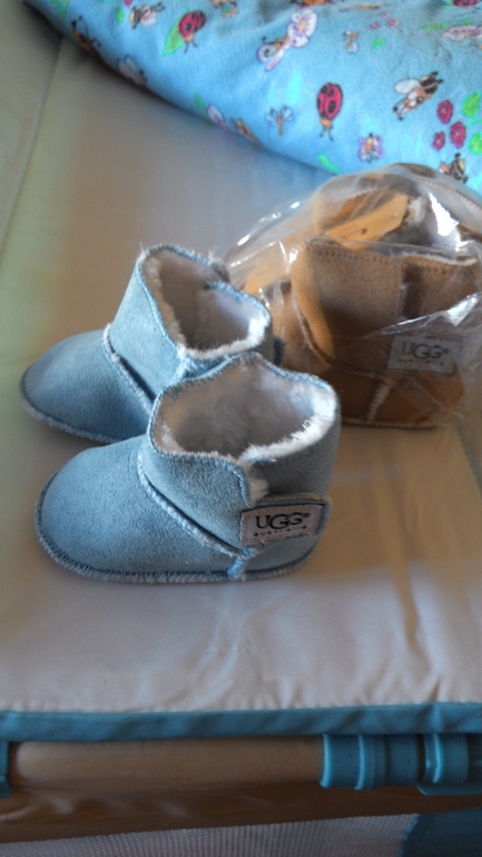 Угги-пинетки))Голубые 0-6 мес,бежевые 12-18.Которые побольше на дачу в качестве тапок планирую.А то холодно бывает