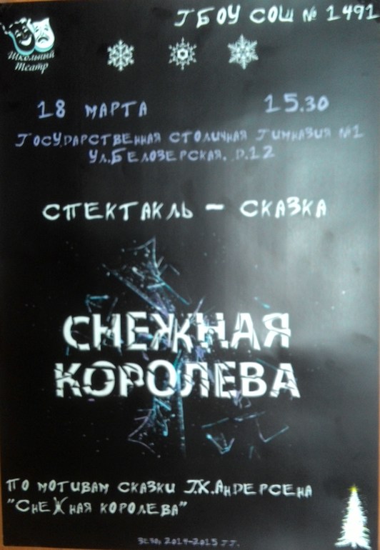 Очень здорово у них получилось! Молодцы! Я посмотрела все видео ... и представила если б мой ребенок там играл...я бы сидела и ревела))) сентиментальная такая стала) . Ещё девочка играющая Герду пела хорошо)