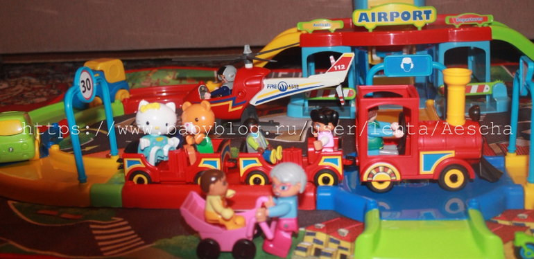 Основа - двухсторонний игровой коврик Majorette (мой отзыв о нем тут) и аэропорт Play City (сегодня его можно купить со скидкой 25%, могу кинуть в свой заказ в My-shop для Саратова - самая выгодная цена 1386 руб.) Аэропорт в Риде, сегодня на него скидка 20% + Ваши баллы (до 30%)!!!