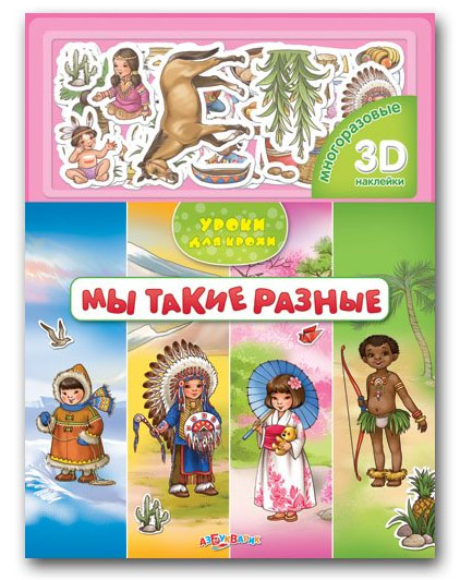 Мы такие разные - 160 руб. - очень рекомендую эту книгу! Иллюстрации чудесные, правда, наклейки вряд ли многоразовые, но клеить их интересно. Плюс образовательный момент.