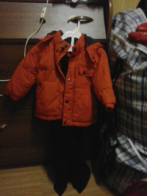 Полукомбез GAP размер 18-24 - носили с курткой, цвет чёрный, просто очумительная вещь. Внутри полукомбеза флис до попы, далее просто утеплёнка. На штанах сбоку внизу штанин молнии, расстёгиваете и спокойно одеваете обувь и носки, а потом поправляете внутренюю резинку (внутри дополнительная брючина с резинкой).